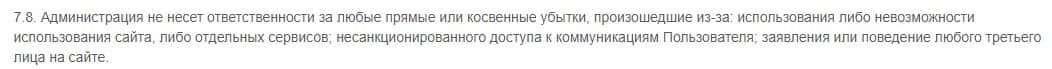 Мошенники Legion Fund отказываются от любых ответственностей за ваши потери, даже если клиент понёс убытки не по своей вине а по вине самих аферистов Легион Фонд.