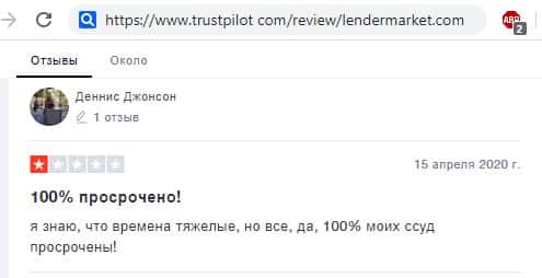 - 100 процентов ссуд на инвестиционной платформе LenderMarket просрочены, - из отзыва на сайте trustpilot com