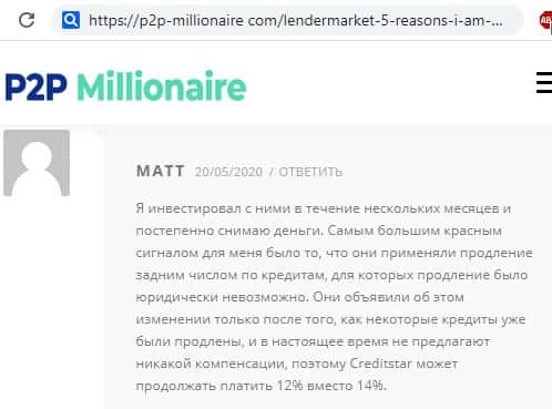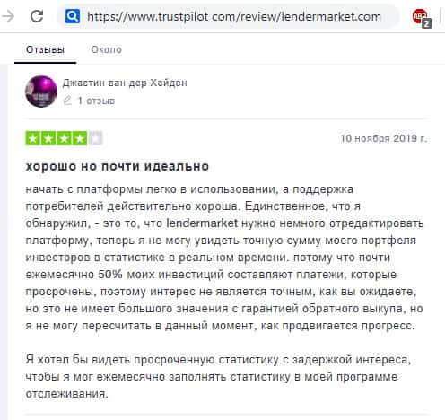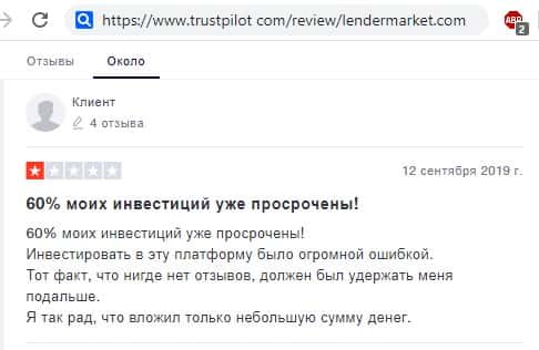 - Клиент компании Лендер Маркет в своем отзыве на trustpilot com сожалеет, что он инвестировал средства в этот проект