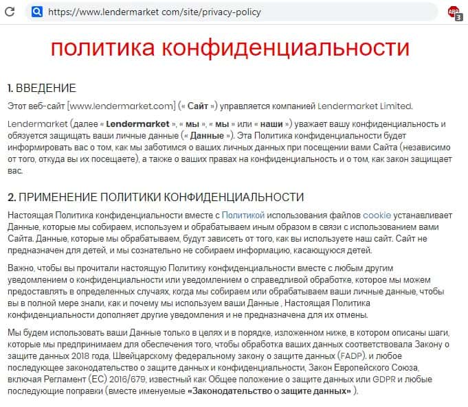 Политика конфиденциальности инвестиционной компании LenderMarket Com, взятая с ее официального сайта