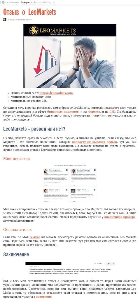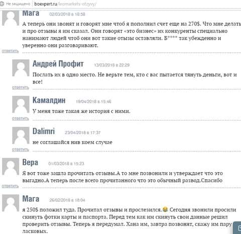 Еще один блок негативных отзывов на мошенническую кухню Лео Маркетс