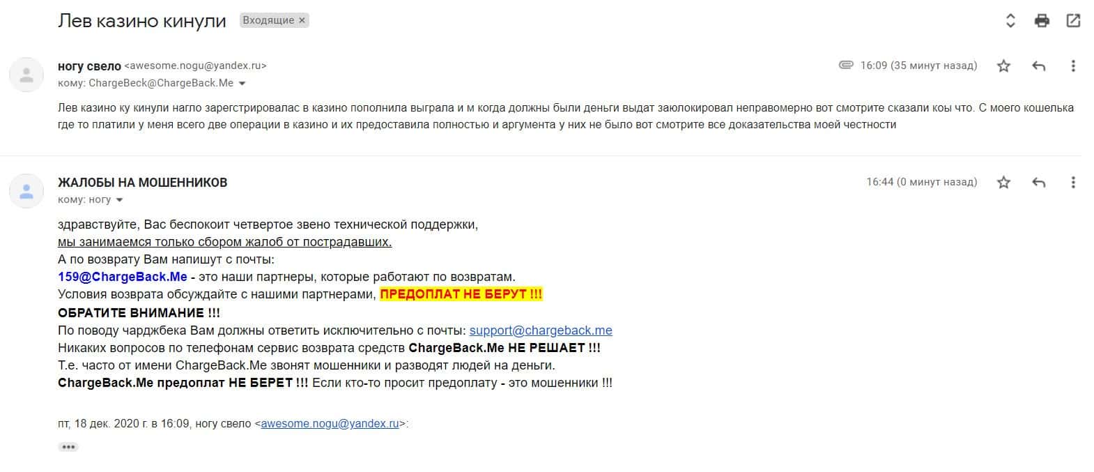 Что касается возможности вернуть свои деньги обратно от МОШЕННИКОВ Лев Казино - пишите сообщение сюда: [email protected]