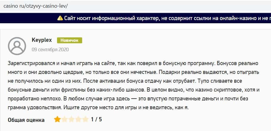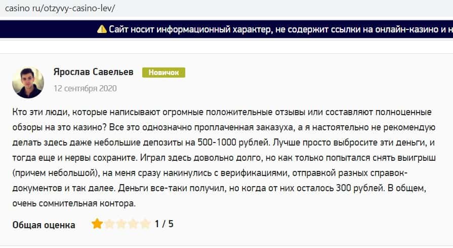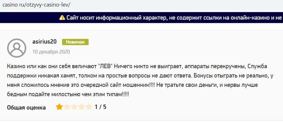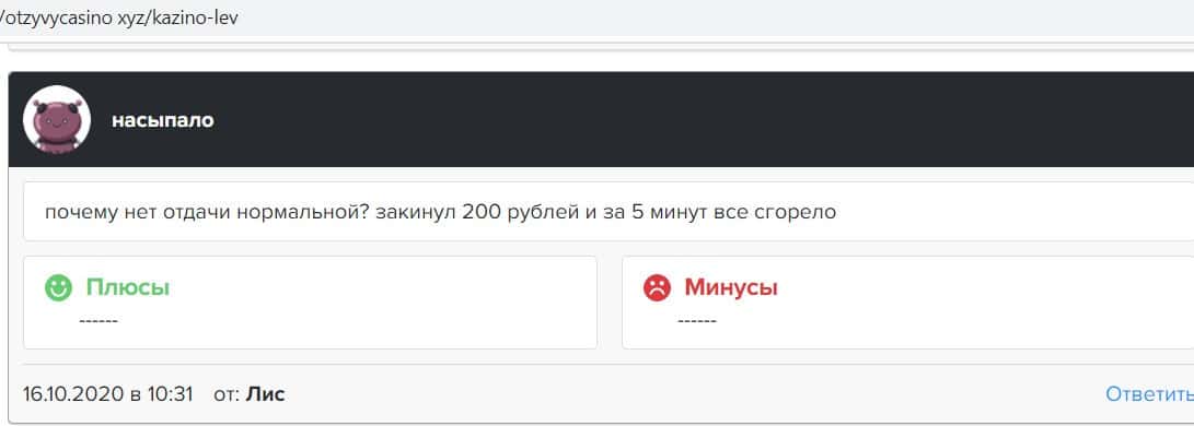 Обзоры на он-лайн казино Лев Казино, найденные в сети