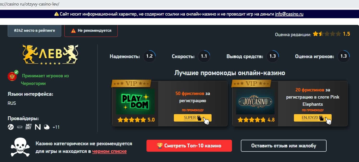 - Обзоры на он-лайн казино Лев Казино, найденные в сети