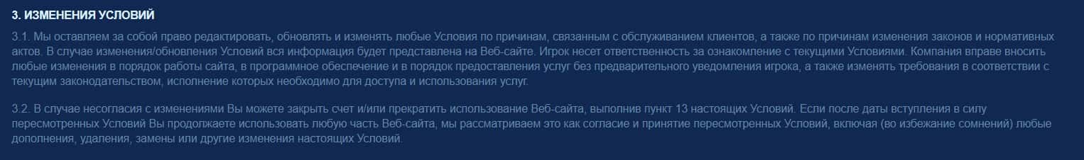 В третьем разделе своего договора администрация Лев Казино что может в любое время изменять условия настоящего договора, а также, делать дополнения и корректировку.