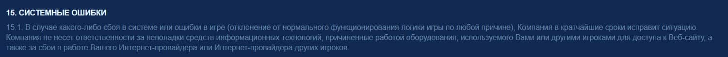 В 15 разделе договора казино Лев Казино говорит, что не несет ответственность за технические неполадки, возникшие на сайте, а также другие проблемы такого же характера.