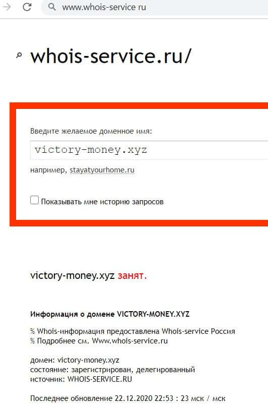 Кому принадлежит доменное имя сайта victory-money xyz?