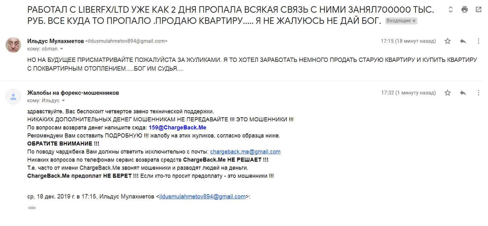 Относительно попытки вернуть свои вложенные деньги обратно от МОШЕННИКОВ Либер ФХ - пишите письмо на почту: [email protected]