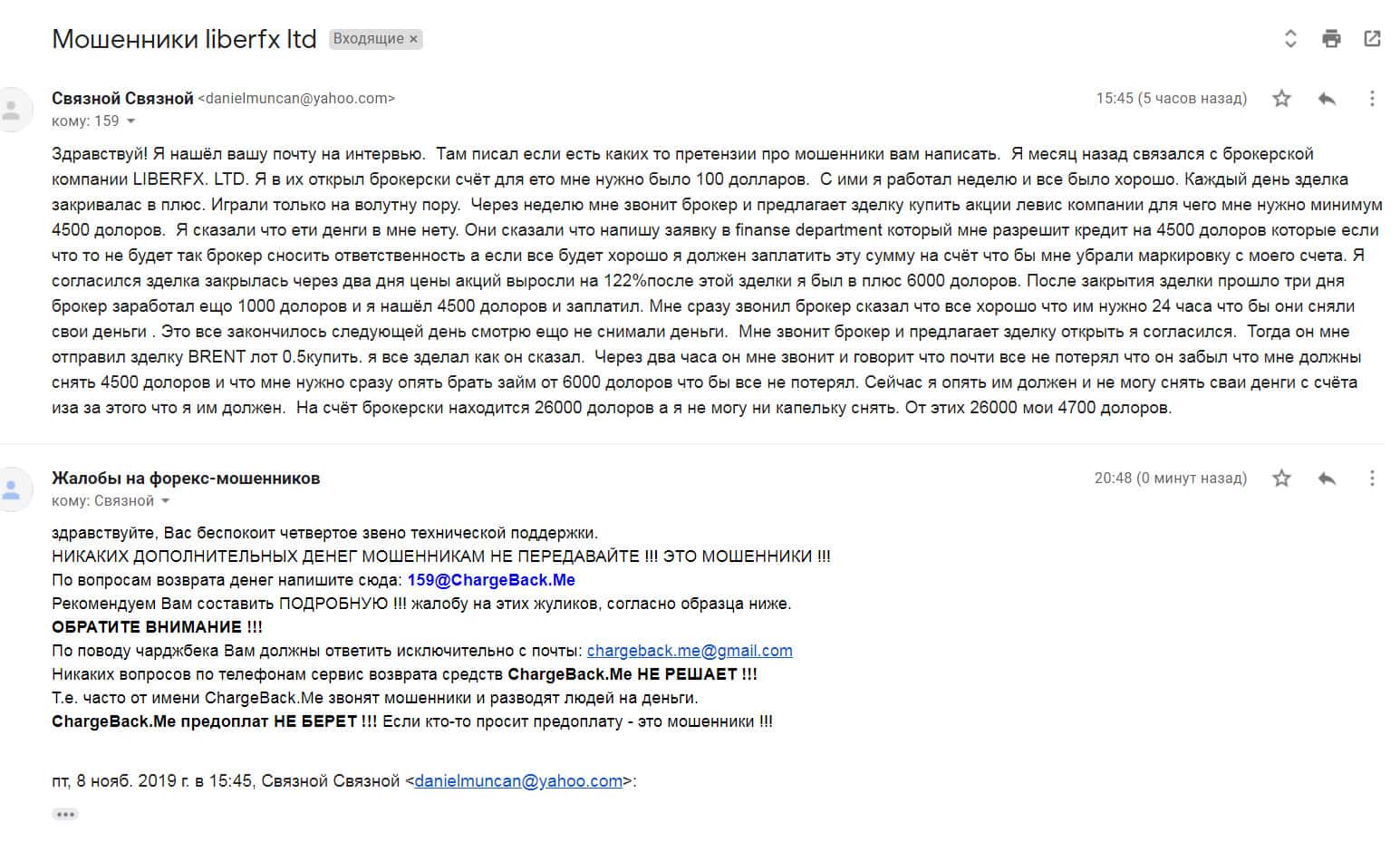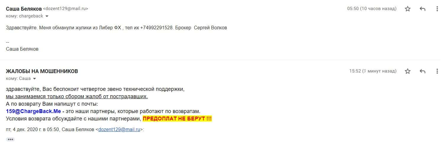 Если бесстыдные махинаторы Либер ФХ Вас развели или стремились это сделать, то сообщите e-mail чуть ниже, и мы без сомнения с Вами установим контакт по электронной почте.