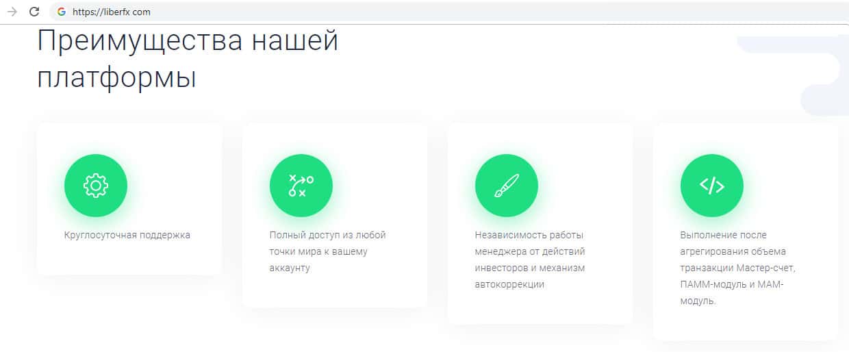 - Якобы преимущества торговой платформы LiberFX