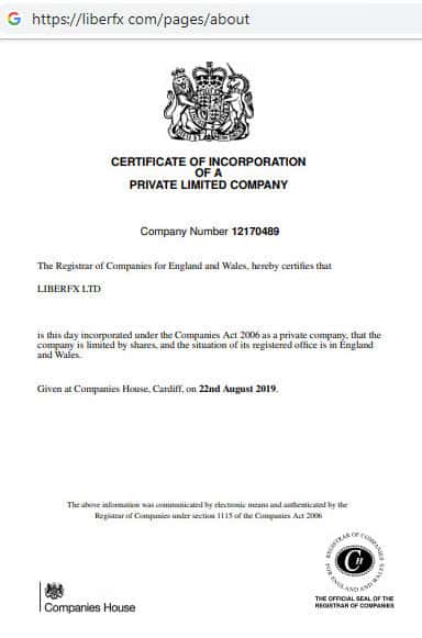 Предоставленный мошенниками Либер ФХ очень легко подделать особенно если он имеется в электронном варианте. Просим заметить, что вместо лицензии аферисты LiberFX предлагают пользователю взглянуть на сертификат о регистрации конторы. На самом деле используя данную мошенническую уловку жулики рассчитывают на невнимательного пользователя.