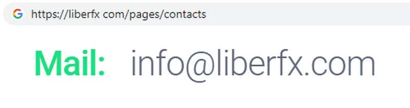 Так же жульническая контора LiberFX для связи на своем официальном сайте указывает адрес электронной почты своей конторы, который указан ниже: