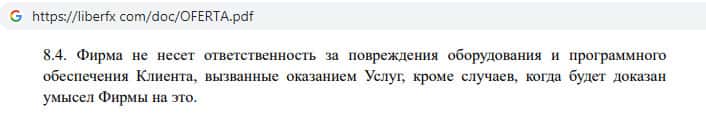 - Отказ от ответственности на сайте мошеннической организации LiberFX