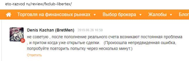 - Отзыв о разводе со стороны шарлатанской организации Libertex