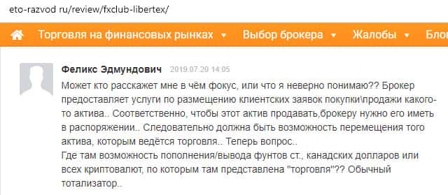 Клиент не советует связываться с дилинговой кухней Либертекс