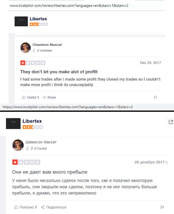Согласно отзыву следующего повествователя, контора Libertex не дает зарабатывать своим клиентам, так как все контролируется в их системе. Жулье использует все методы, дабы подкорректировать данные и они не заинтересованы в прибыльных трейдерах. Так что не удивляйтесь, если вы не можете выйти хотя бы в ноль.