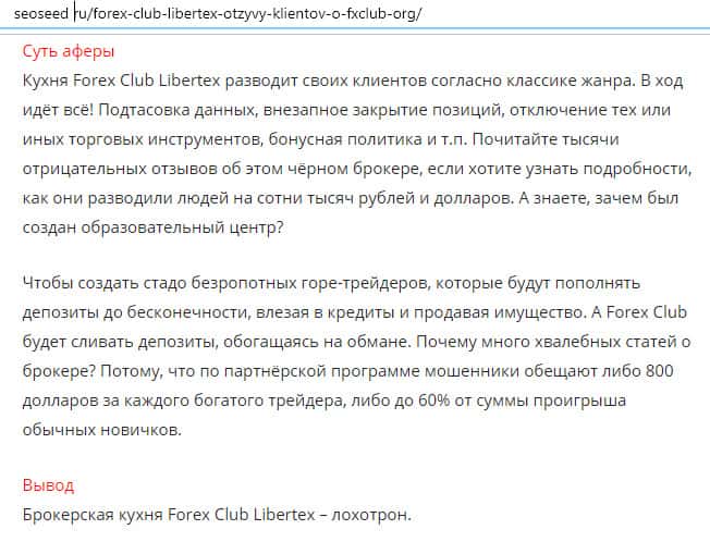 Отзыв о разводе со стороны шарлатанской организации Libertex