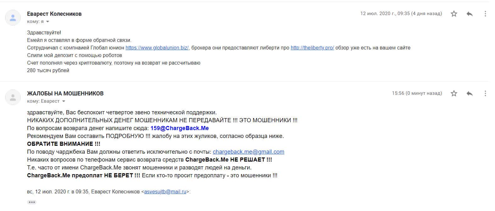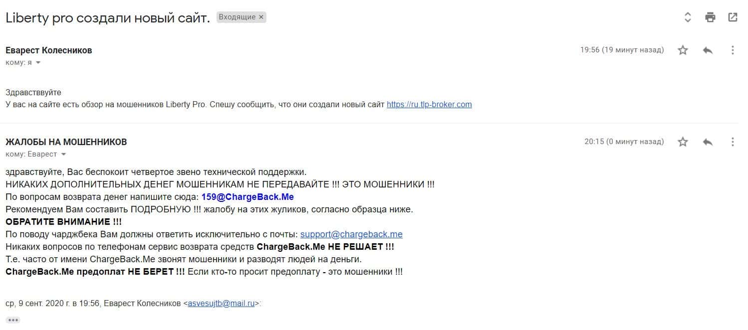 В том случае если воры из Либерти Про Вас тоже слили, то в такой ситуации обязательно расскажите о данном факте нам. Оставьте Ваш электронный адрес в форме для обратной связи ниже, с Вами выйдут на связь.