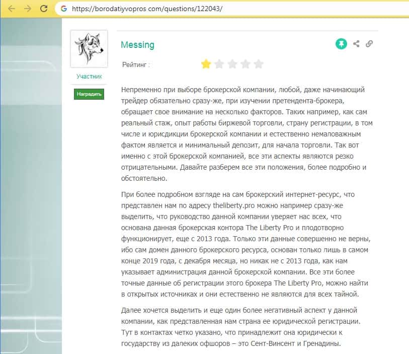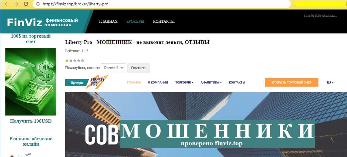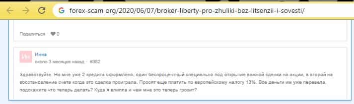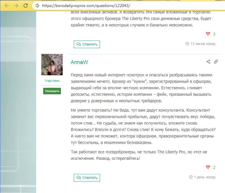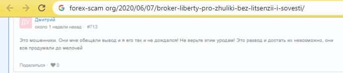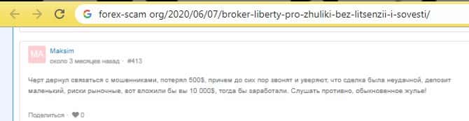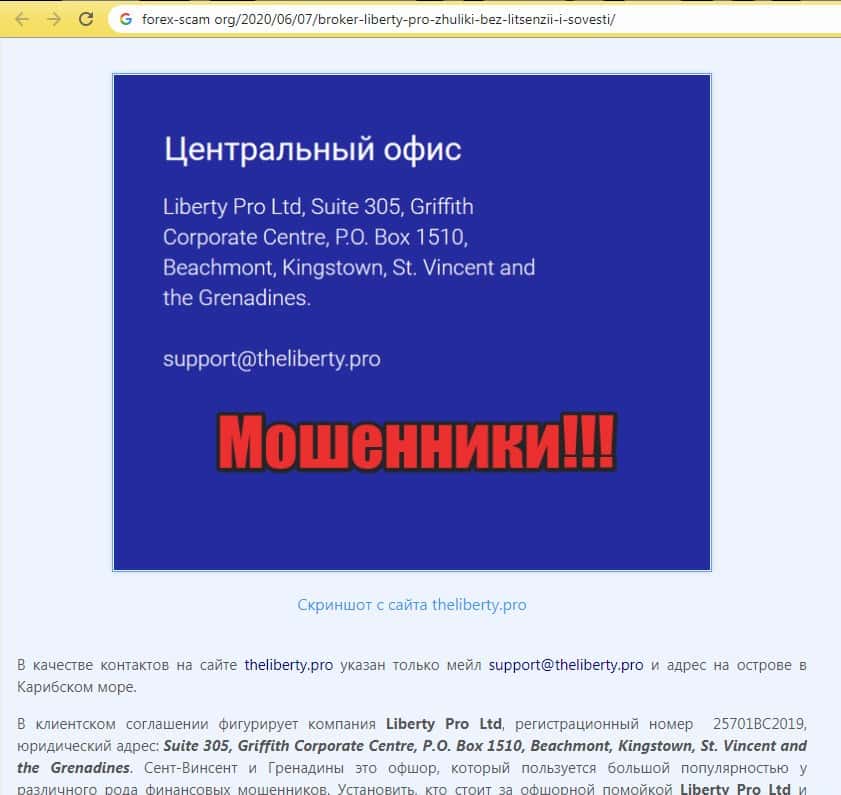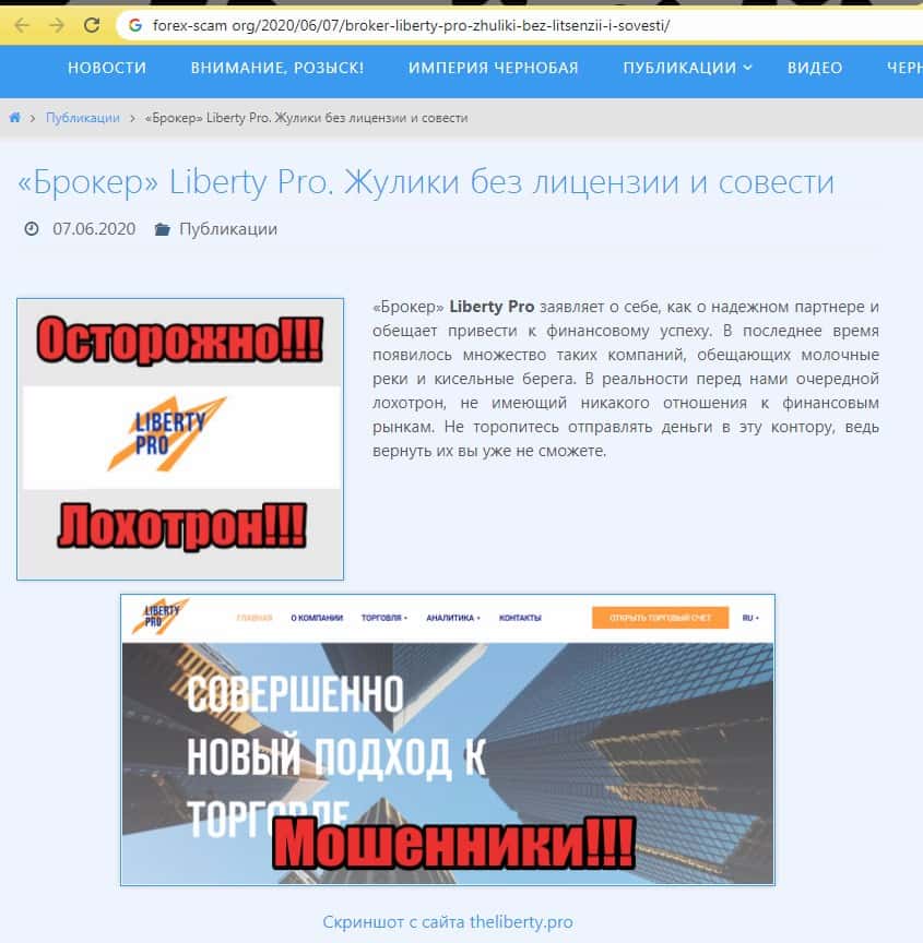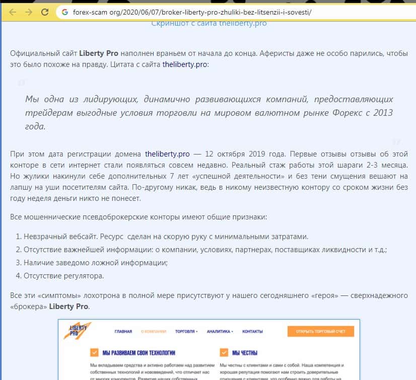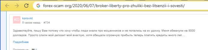 - О махинациях шараги Либерти Про написали на странице форекс-скам орг