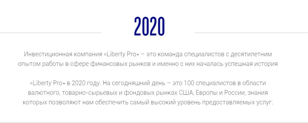 Судя по всему самый лживый раздел сайта мошенников TheLiberty Pro, в котором аферюги рассказывают о себе. Каждая строка данного раздела пропитана ложью и непонятной информацией. Где они рассказывают какие они хорошие, честные и профессионалы. Но не пишут о том, как они обманывают клиентов и сливают их деньги.