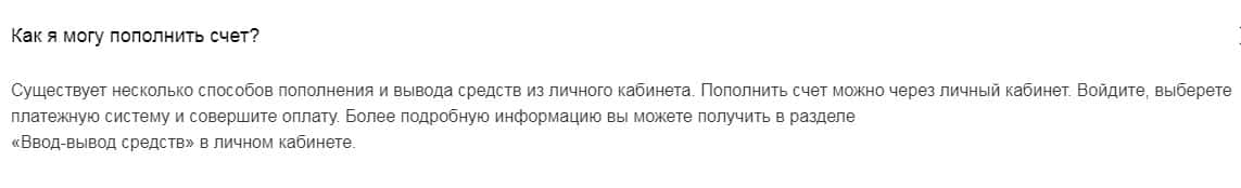 Интересное заявление администрации брокера в разделе о том, что клиент может приобрести себе депозит, который будет приносить деньги, при этом человеку делать ничего не надо. Никогда не ведитесь на такое, потому что получить больше, чем клиент вложил не даст ни одна дилинговая контора.