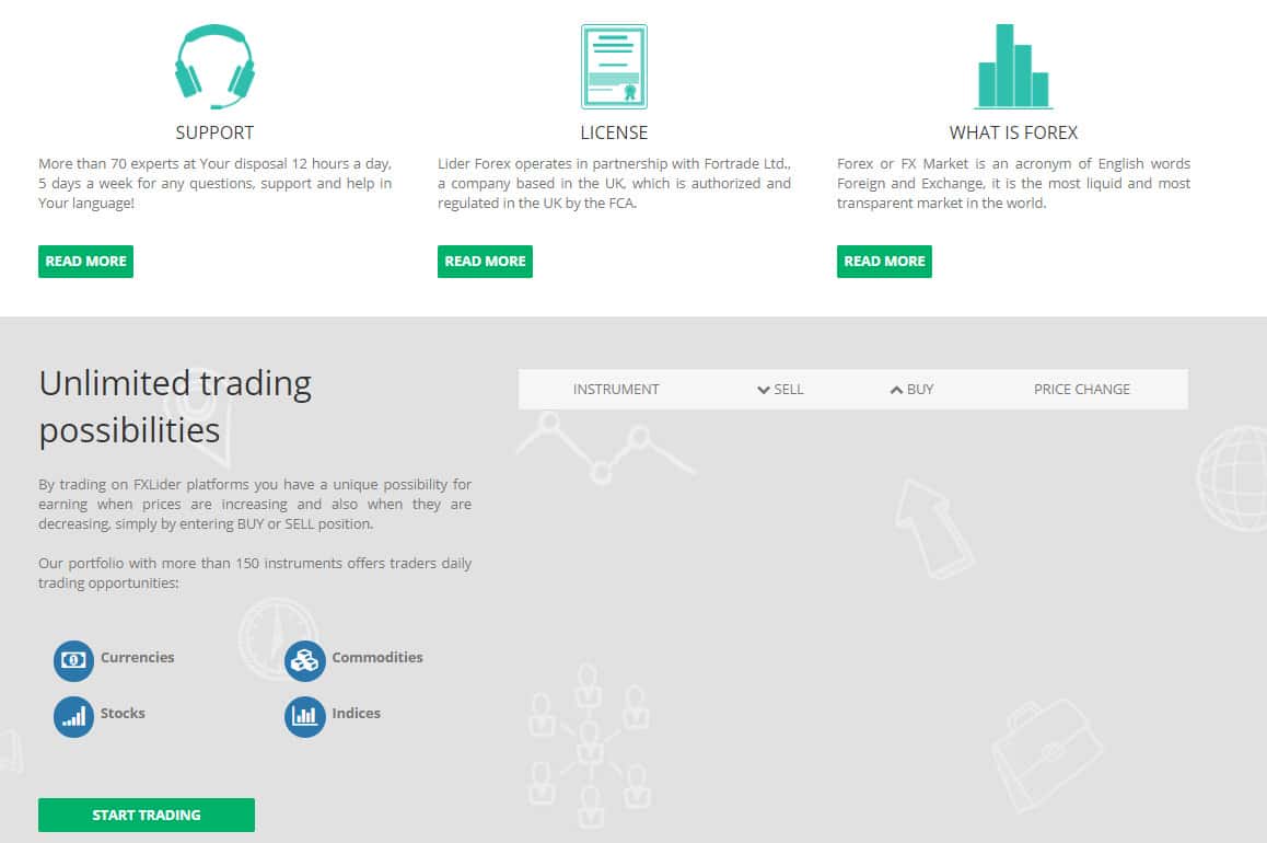 Далее на своем дешевом сайте, лохотрон Лидер Форекс расположил данные о лицензии, технической поддержке и некоторые данные о форексе. Далее, рассказы об "успешности" компании, и как брокерская фирма сотрудничает с трейдерами и ни в коем случае, не кидают. Проще говоря, стандартные темы для привлечения народа на подобные лохотроны.
