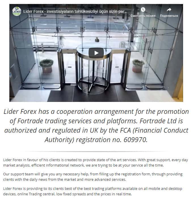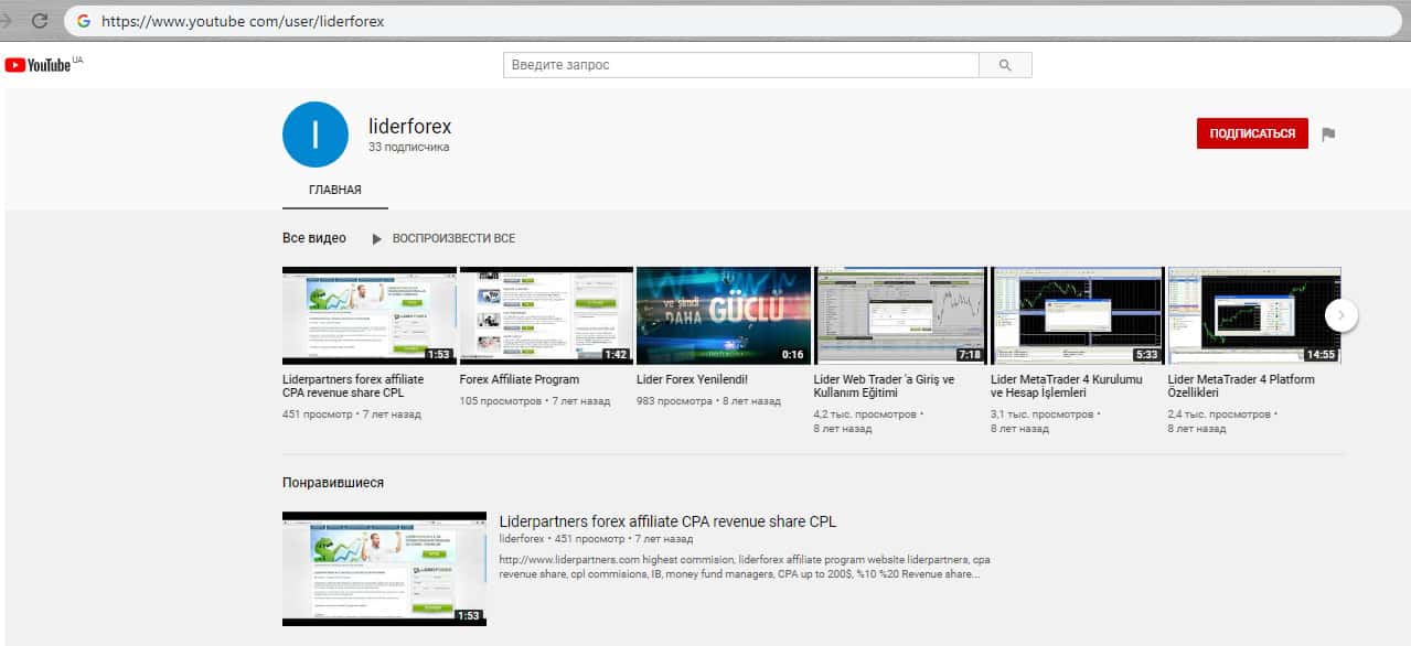 Для рекламы и привлечения аудитории, такой дешевый лохотрон как Lider Forex, создал свои страницы в популярных социальных сетях таких как YouTube и Facebook. Везде рассказывается о том, какая навороченная компания, и как всё отлично. Но на самом деле, это просто дешевая реклама, чтобы привлекать наивных трейдеров. Перейдем к страницам: