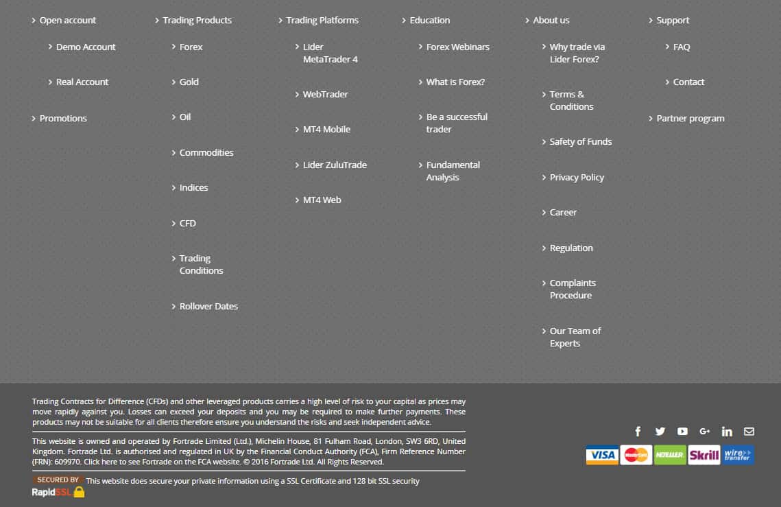 Медленно но верно, мы добрались до конца сайта мошенников Лидер Форекс. Тут они расположили множество вкладок, в том числе о создании аккаунта, связи с технической поддержкой, часто задаваемыми вопросами и так далее. Начинает казаться, что контора не разводит людей, а работает честно и абсолютно правильно.