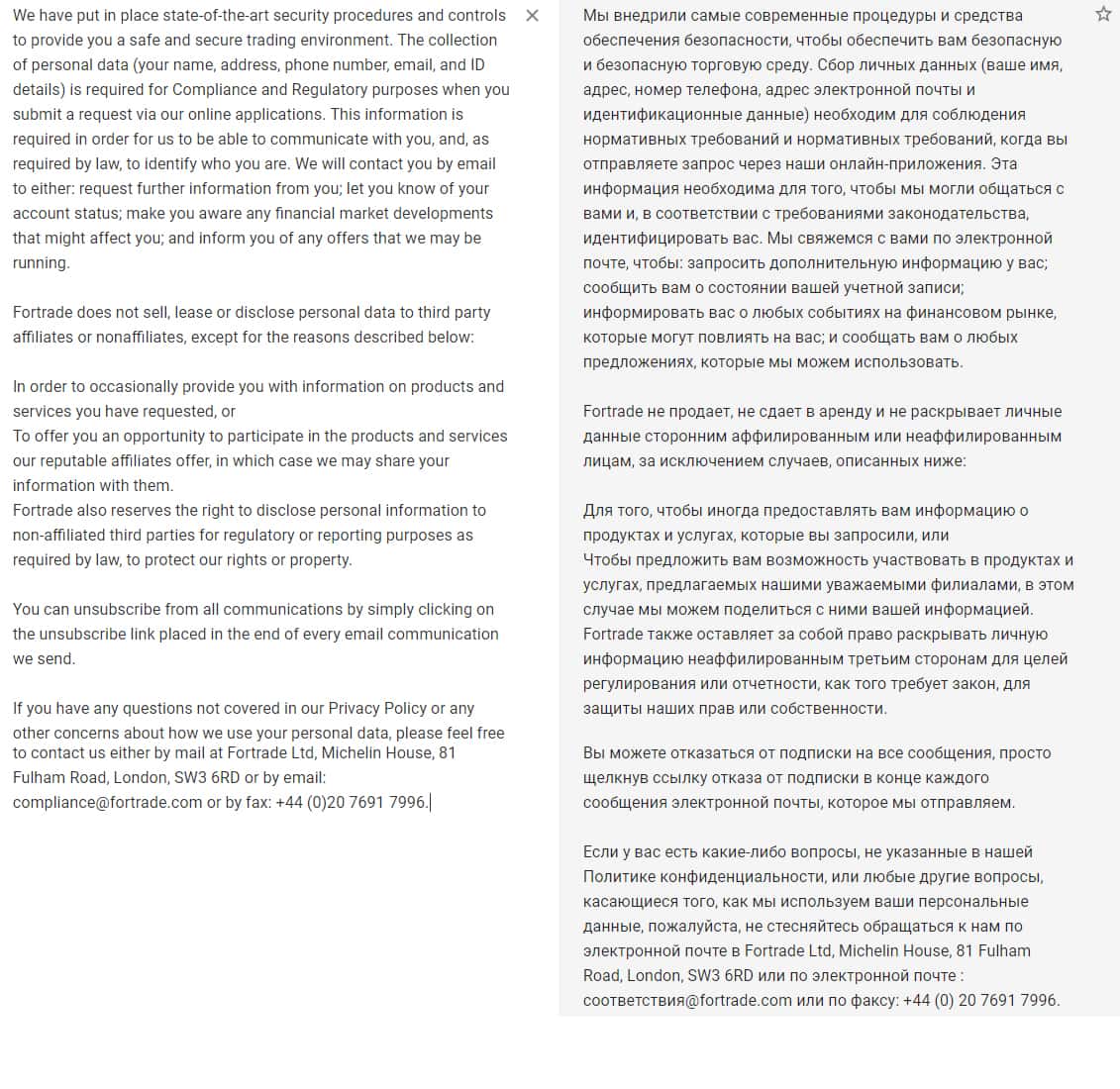 В начале политики конфиденциальности конторы Лидер Трейд нет никаких загвоздок. Рассказывается зачем собирается информация, что при этом делается. Но есть момент, они раскрывают личные данные трейдеров посторонним лицам, чтобы отсылать бесполезный спам. Кроме того, не дается гарантия, что с этим могут сделать что-то похуже, чем просто спам.