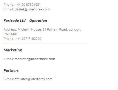 - электронные почты affiliates@liderforex com marketing@liderforex com destek@liderforex com