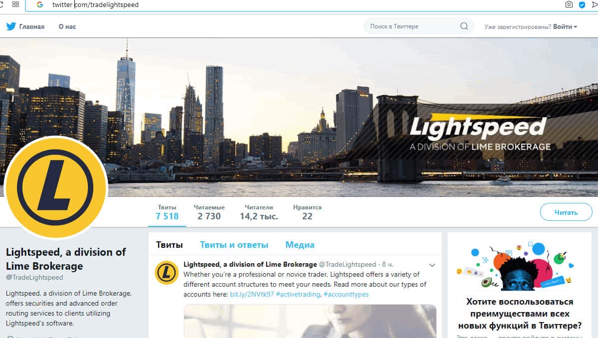 - аккаунт в Твиттер twitter com/tradelightspeed