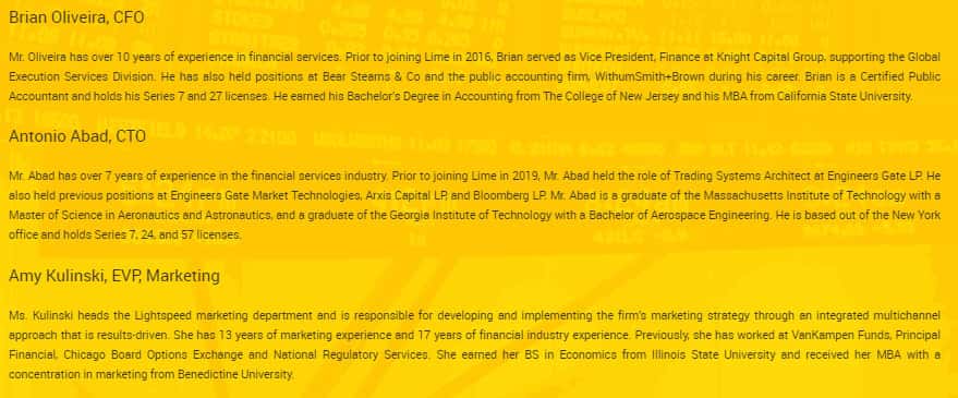 Лохотрон Лайт Спид Трейдинг не побоялся и изложил на своем сайте некоторую информацию о своем руководстве. Как обычно это бывает, что данные имена, фамилии и должности выдуманные и таких людей не существует. И все же лица, показывать они не решились. А вот собственно и список псевдо-руководства: