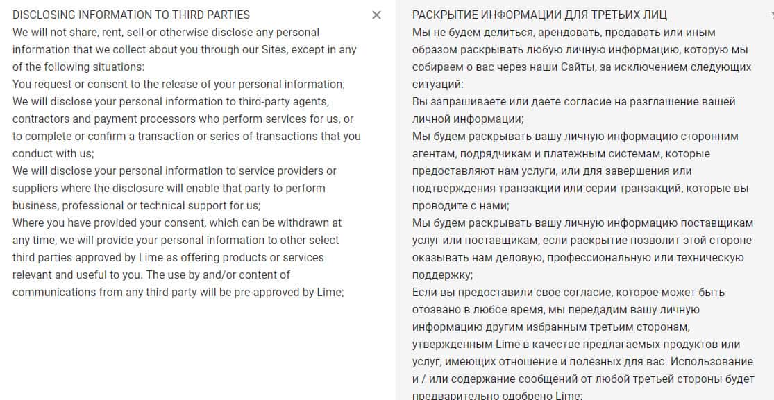 Политика конфиденциальности лохотрона Лайт Спид Трейдинг довольно двоякая, так как они в одном и том же разделе могут придерживаться двойных стандартов. Аферисты используют это, чтобы можно было запутать клиента касательно момента раскрытия личной информации третьим лицам и нести ответственность за эти действия они не будут.