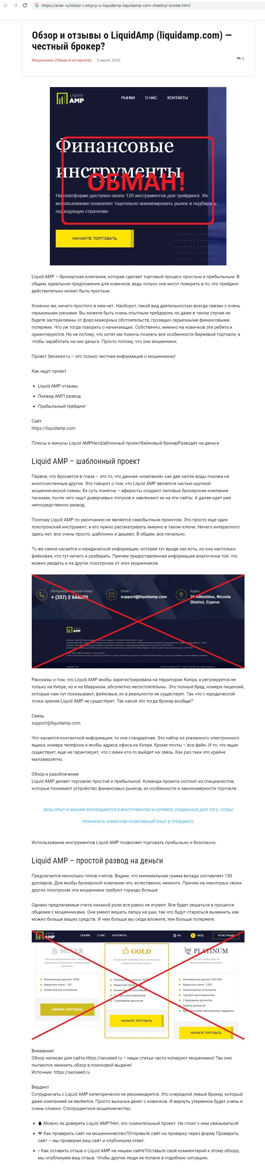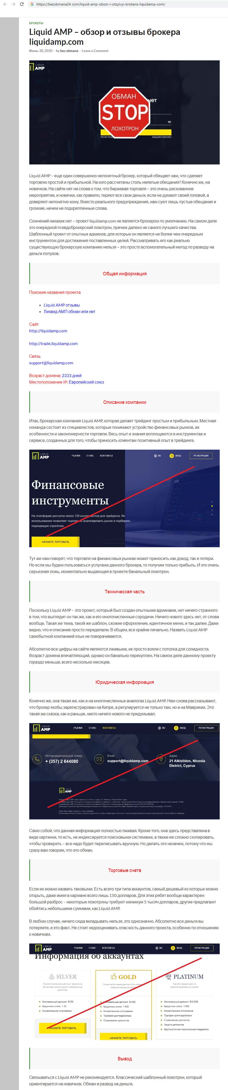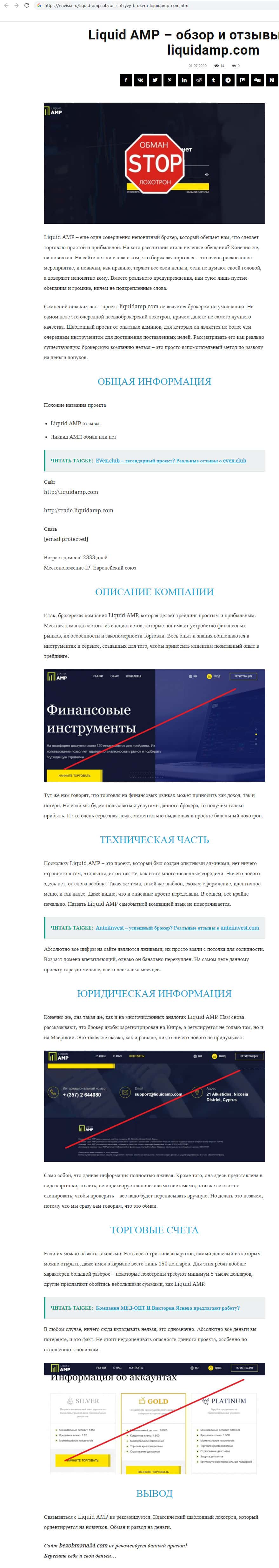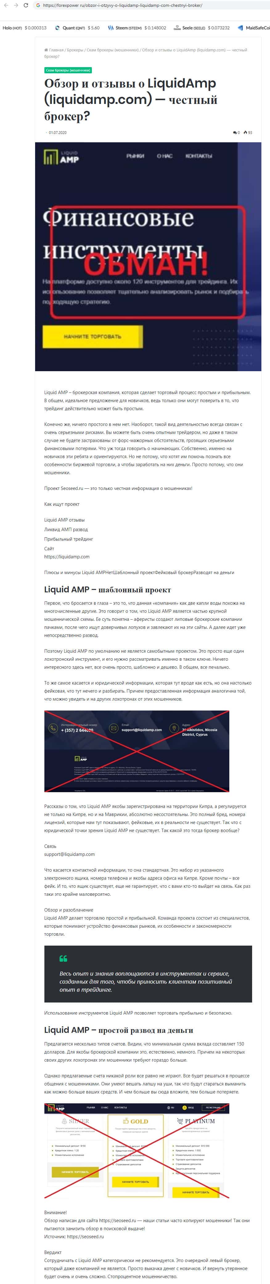 Разоблачительная статья о мошеннической организации LiquidAMP