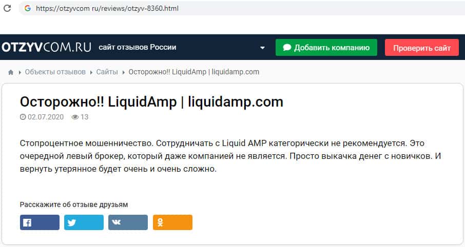 - Мнение сайта otzyvcom ru о шарашкиной конторе LiquidAMP
