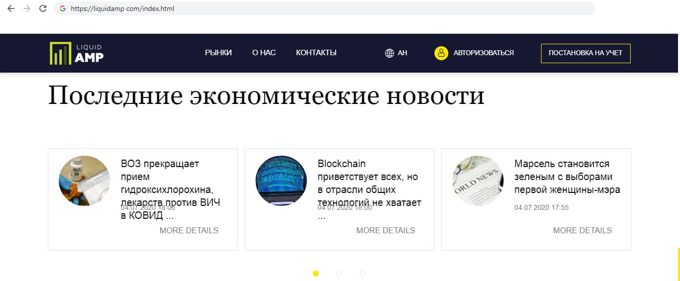 Интернет ресурс кидал Ликвайд АМП так же опубликовал раздел с новостями. Но это всего лишь фальшивка, так как с помощью поддельных новостей компания манипулирует клиентами заставляя их заключать убыточные сделки. Таким образом компания просто будет присваивать деньги пользователей, а клиентам говорить о том, что сделка оказалась убыточной.