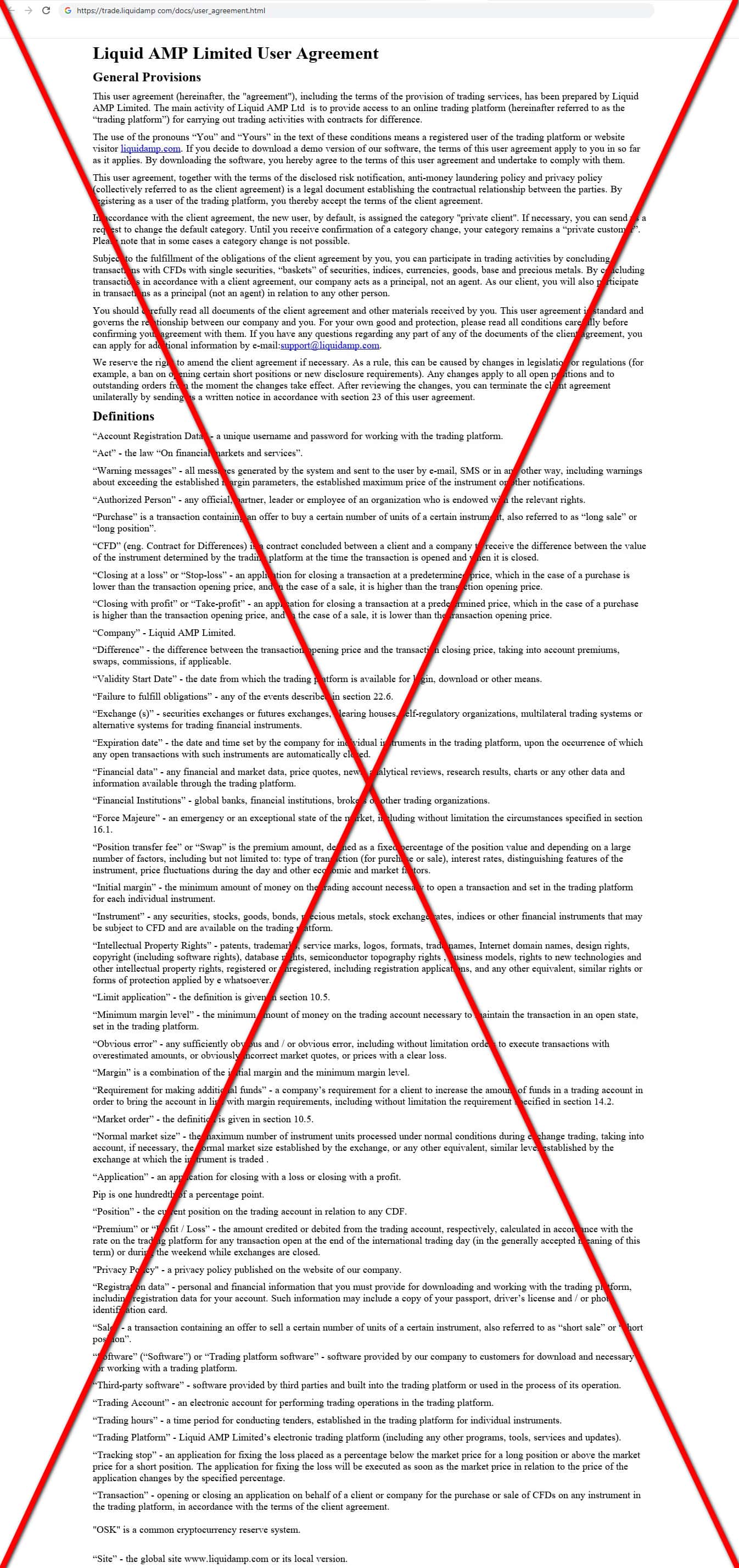 - Псевдоброкер LiquidAMP предоставил фальшивое пользовательское соглашение