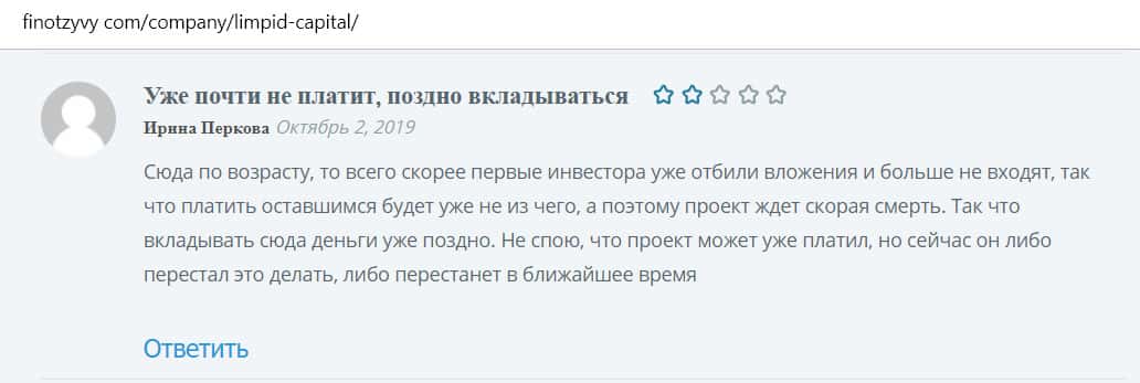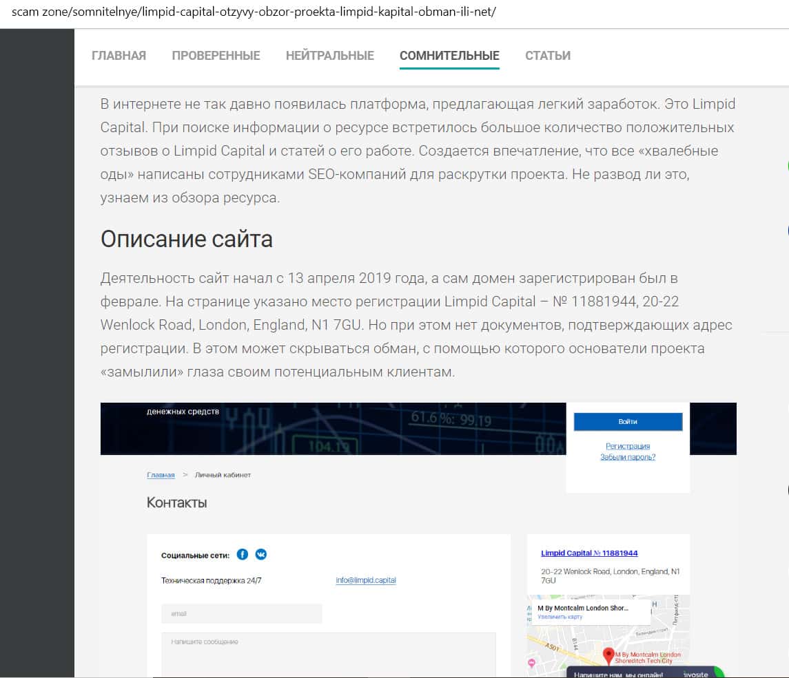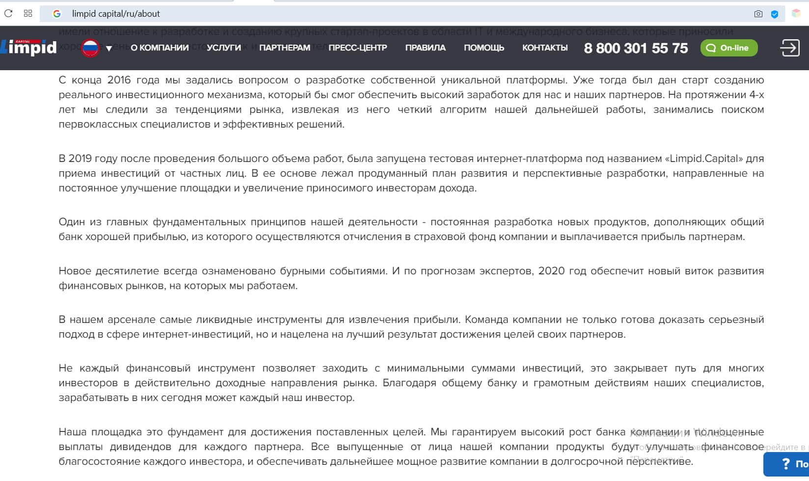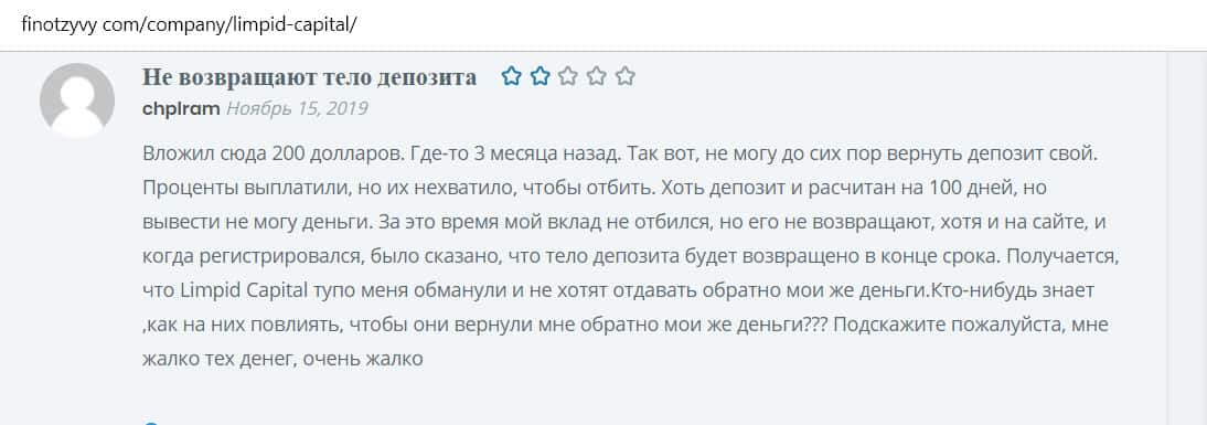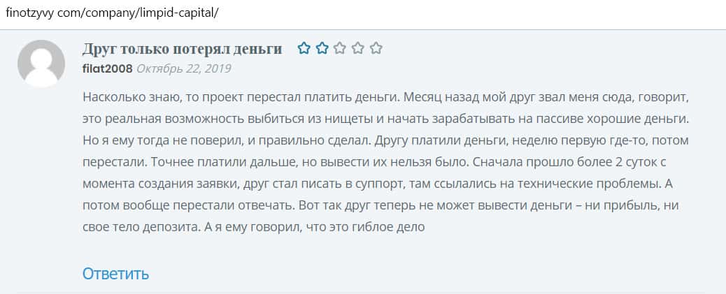 - Отзыв на сайте otzovichka ru: проект Limpid Capital является фейковым, чему есть очень много доказательств