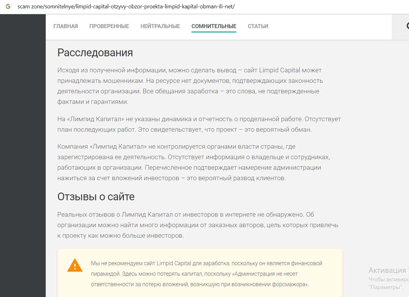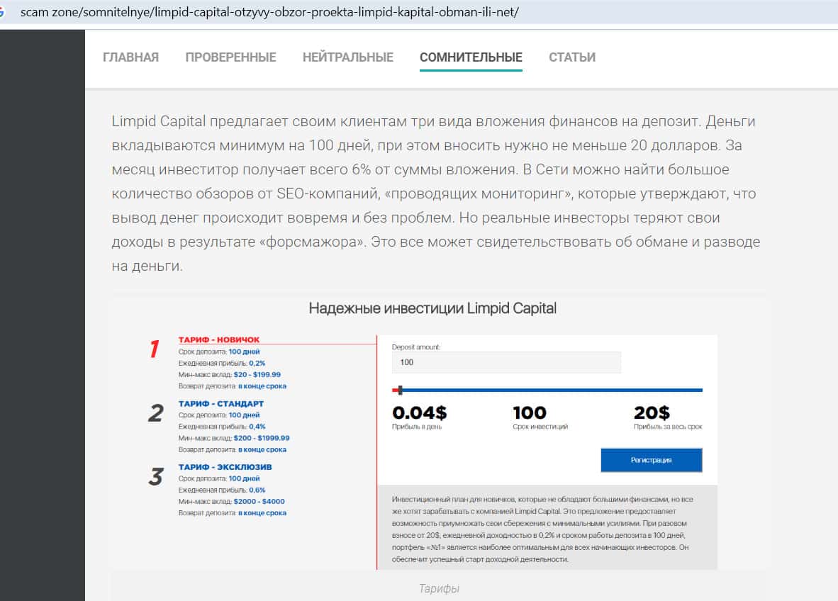 Что думают создатели сайта scam zone про мошенников из Лимпид Капитал?