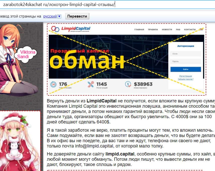 - Мнение блогера на сайте zarabotok24skachat ru о шараге Лимпид Капитал