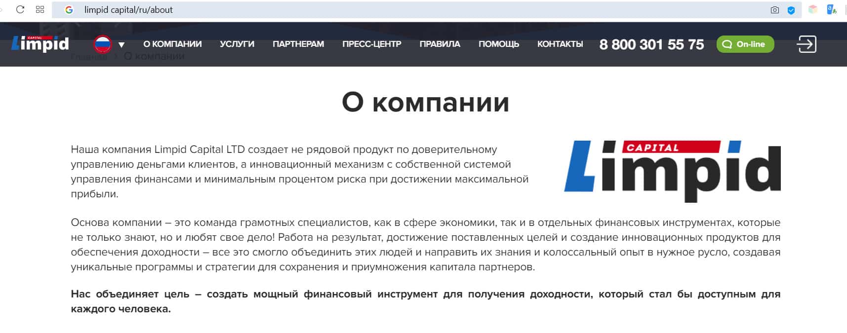 - Как выглядит сайт мошеннической конторы Limpid Capital?