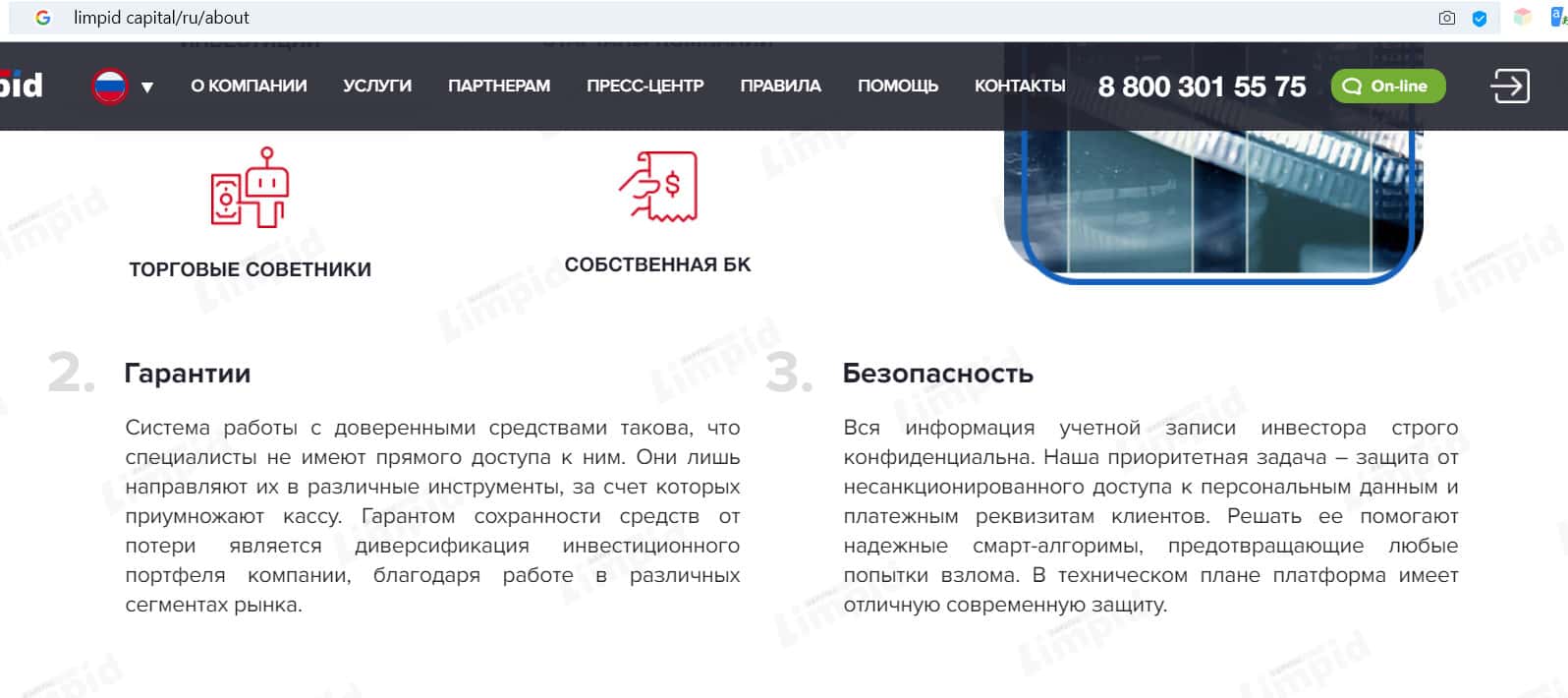- Какие гарантии дает контора Лимпид Капитал своим клиентам?