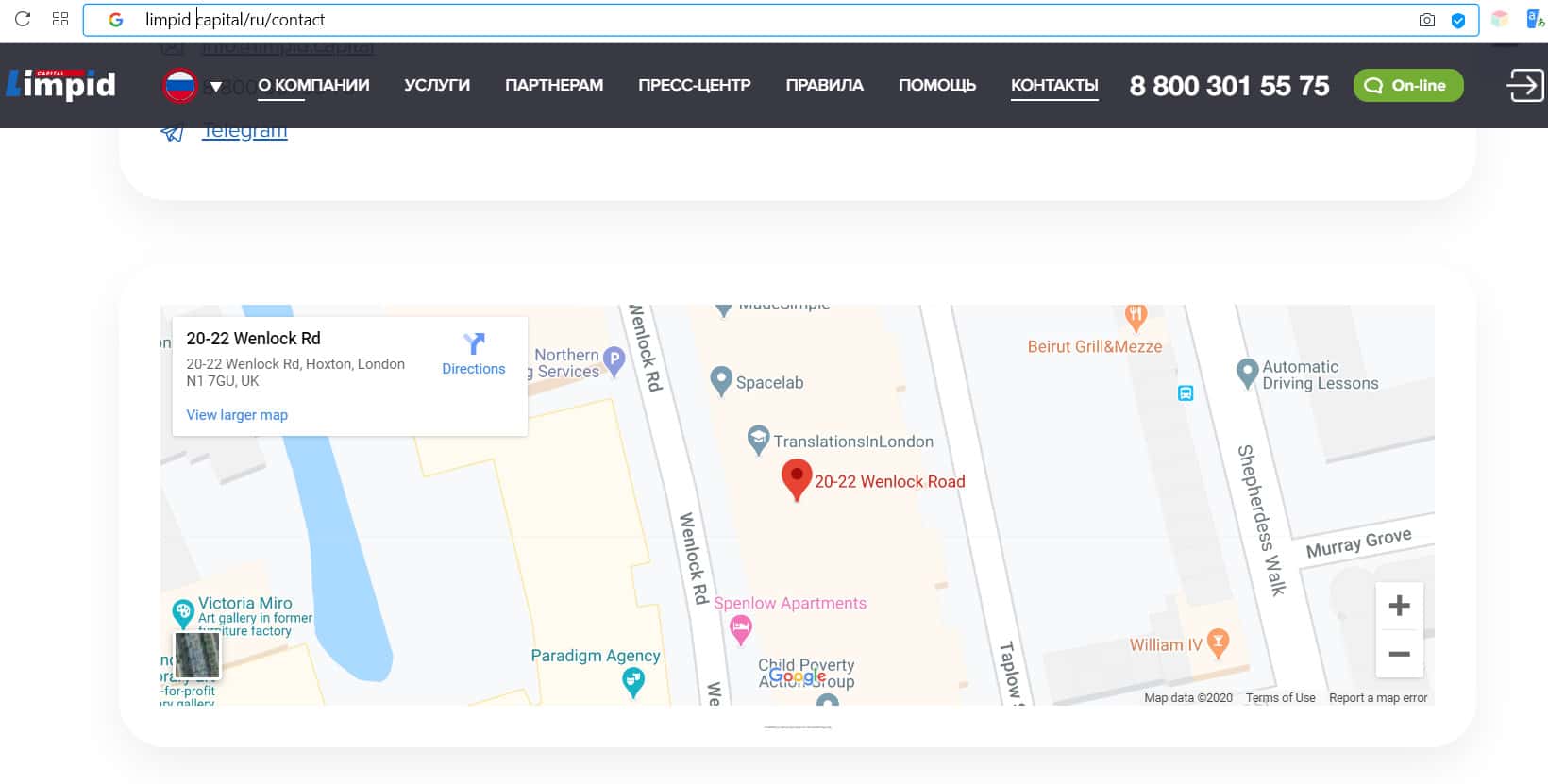 Нет никаких сомнений в том, что контора Лимпид Капитал - никакая не международная организация, а банально российский лохотрон, ориентированный на наивных простачков. Карта на сайте с геометкой в Лондоне выбрана рандомно. Если приблизить локацию, никакой организации Лимпид Капитал там нет.