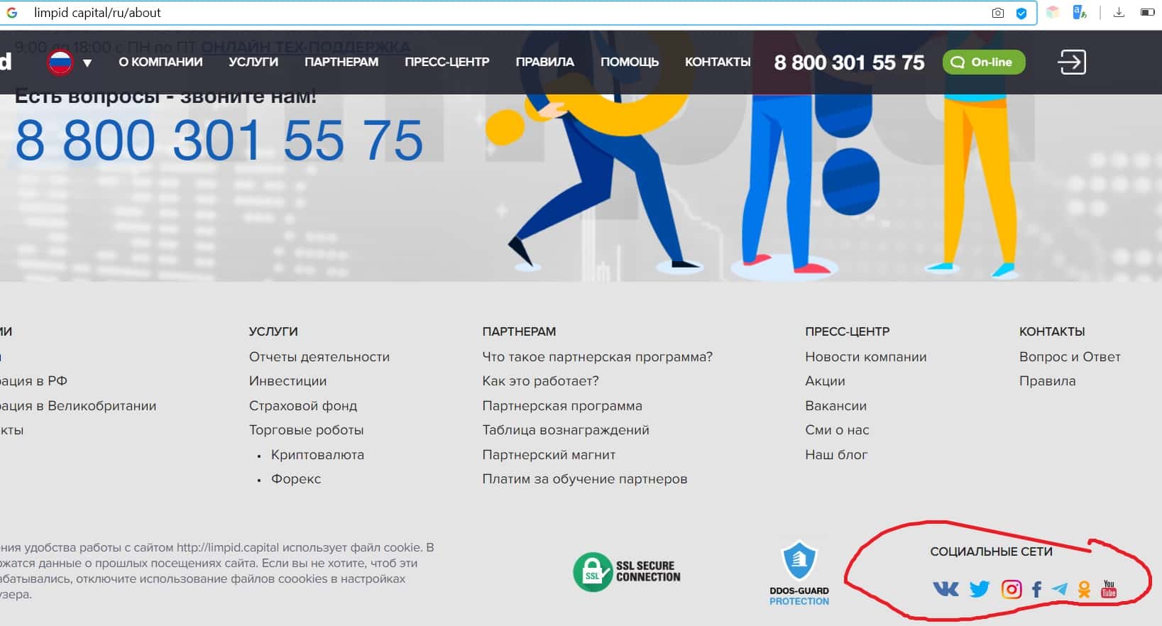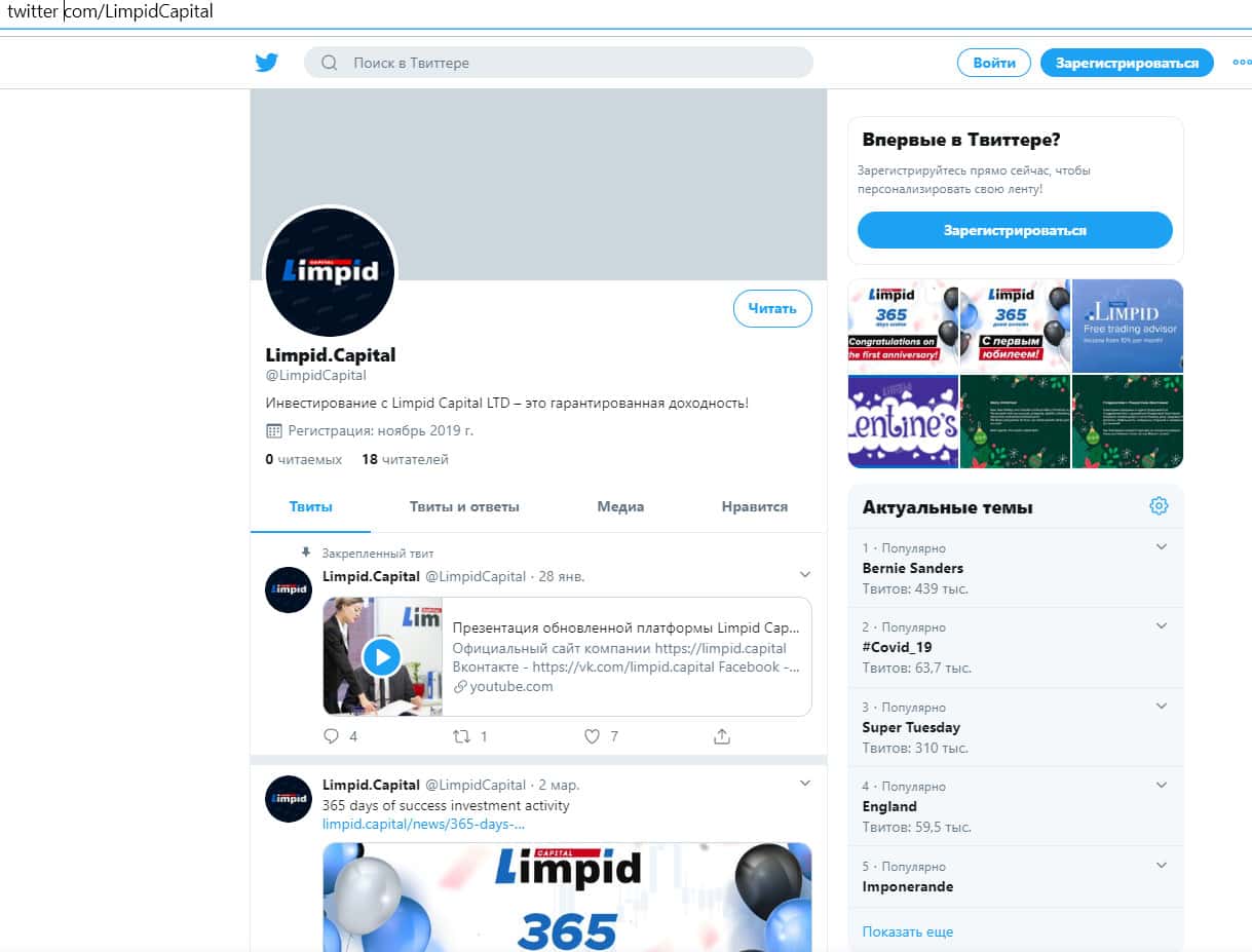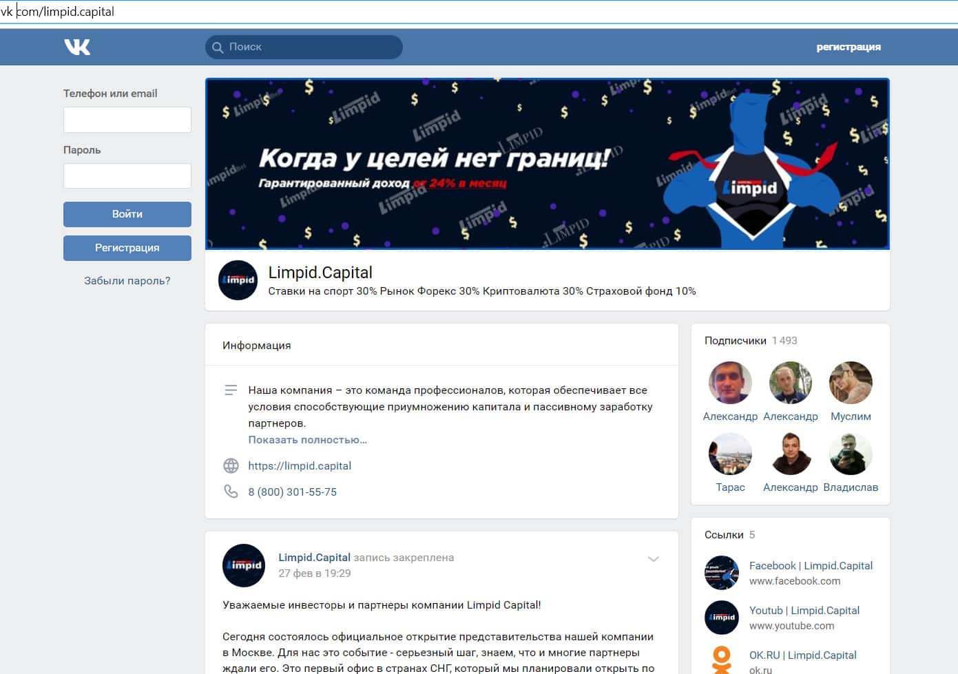 - Есть ли организация Лимпид Капитал в социальных сетях?