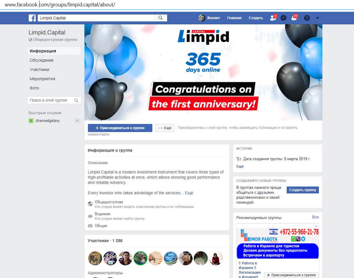 Международная компания Limpid Capital, разместившая свои офисы по всему миру, как это заявлено у них на площадке, имеет всего чуть больше тысячи подписчиков в сети Фейсбук. Если внимательно присмотреться, большая часть из них - это индусы, арабы, то есть те люди, кто подписывается на все, что угодно.