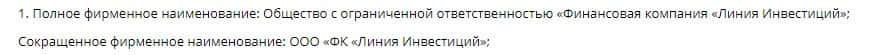 Официальным юридическим лицом, который ведет дела с клиентами от имени жуликов Линия Инвестиций является ООО «ФК «Линия Инвестиций».