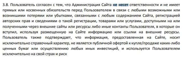 Также самое главное, от чего себя сразу же обезопасили жулики Line-Invest Ru - это то, что они сняли с себя ответственность за ваши убытки, которые могут возникнуть.