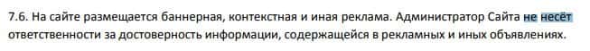Если вы пострадаете от рекламы, которая размещена на сайте мошеннической компании Линия Инвестиций, то они не будут нести за это ответственности.