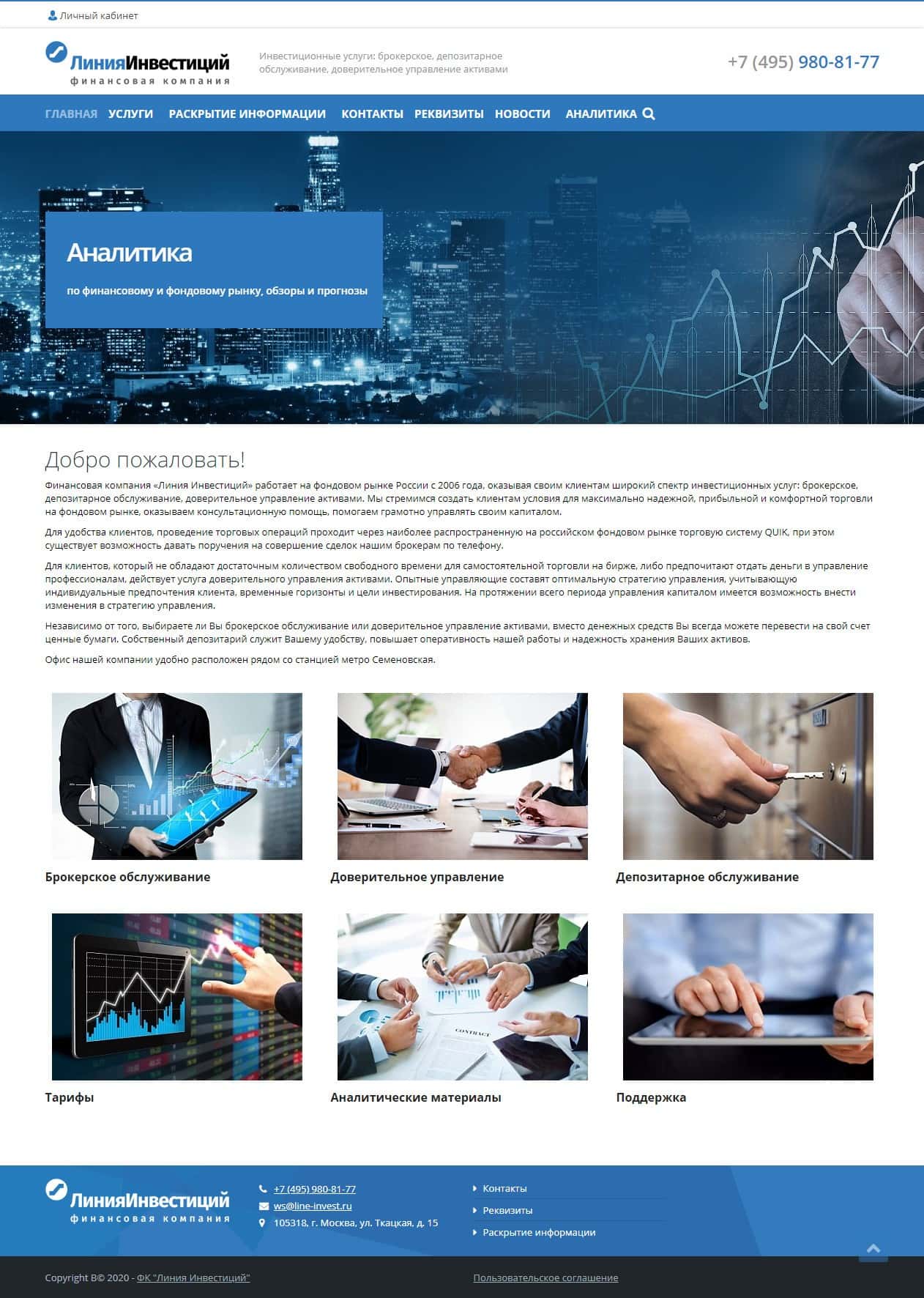 Главная страница сайта мошеннического проекта Линия Инвестиций имеет типичный вид для таких лохотронов - посредственный дизайн и минимум полезной информации для клиента.