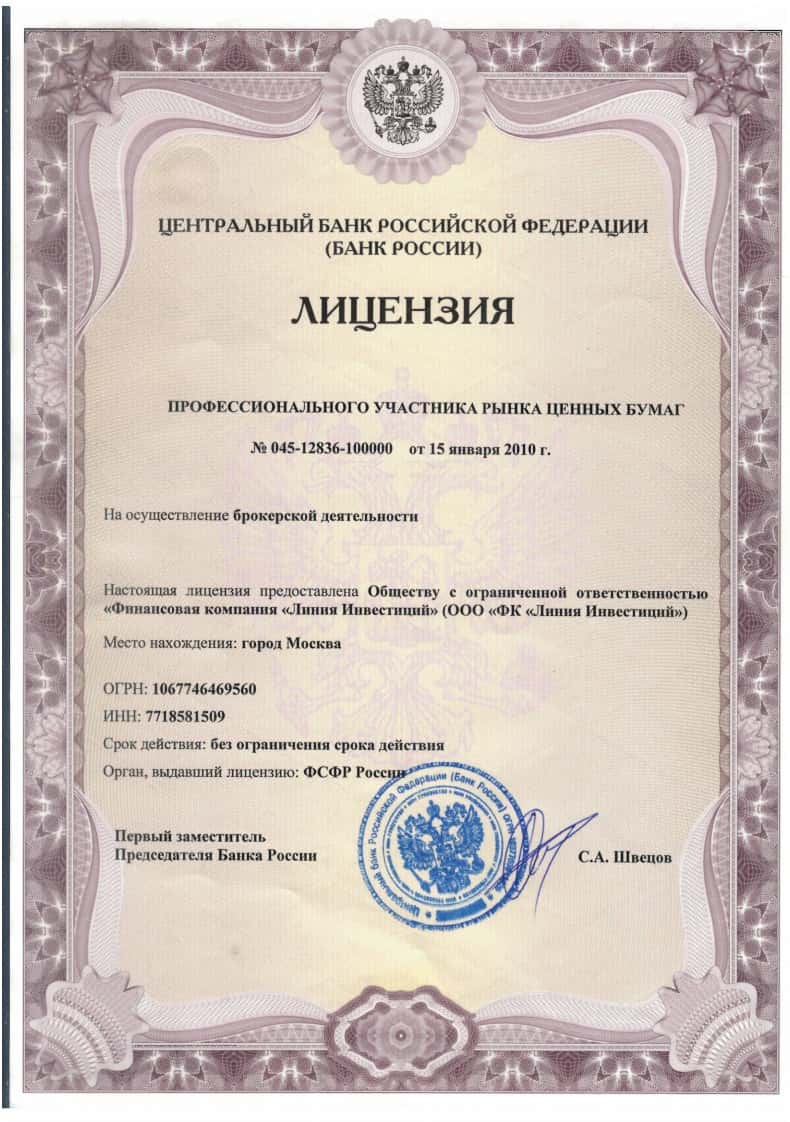 Лицензия мошенников и жуликов Линия Инвестиций